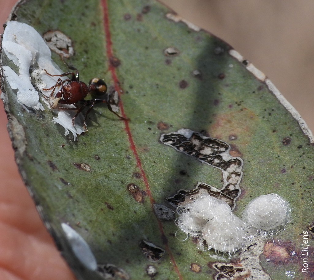 Pictured above is an ant (Chelander rubriceps) devouring a psyllid nymph after breaking through the roof of the lerp.