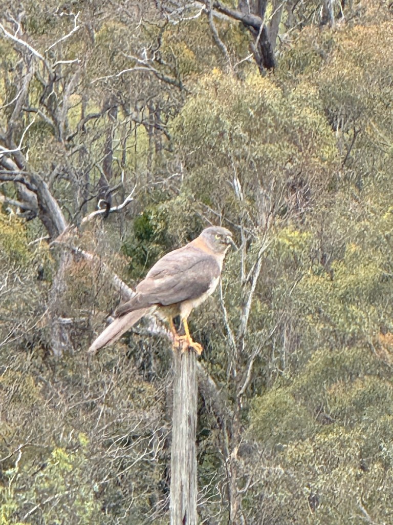 Eric and Sue a top Murchison’s Gap have recently spotted a Brown Goshawk perched on a pole on their property, pictured above.