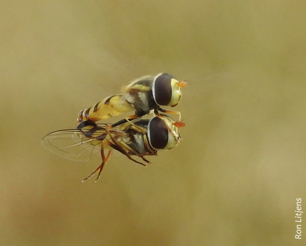 As the name suggests hoverflies are flies i.e. they have two wings, and their flight pattern is characterised by hovering. Adults hover in front of flowers to locate the nectar and pollen on which they feed. Female hoverflies will also hover when scoping out a site to lay her eggs whilst the males will hover when looking for a female. Although they do not actively collect pollen the number of hoverflies and the sheer number of flowers that they visit make them great pollinators.