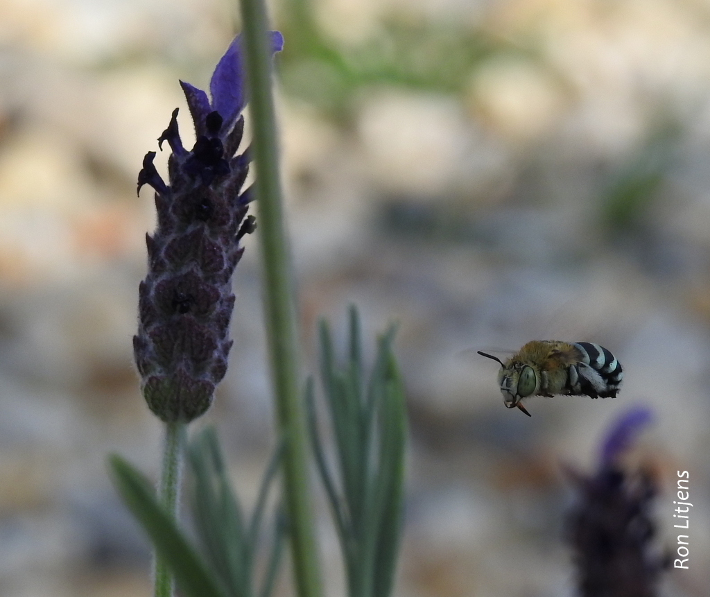 One of the physical characteristics that distinguish bees from each other for example is the length of their tongues. Long-tongued bees have mouth parts designed for sipping, like through a straw. These bees are good at extracting nectar from deep throated flowers such as lavender and salvia. The Blue-banded Bee (Amegilla sp.), pictured above with its tongue protruding is a long-tongued Australian native bee. Short-tongued bees have mouth parts adapted more for lapping from flowers such as eucalypts that have a shallow nectar bowl.