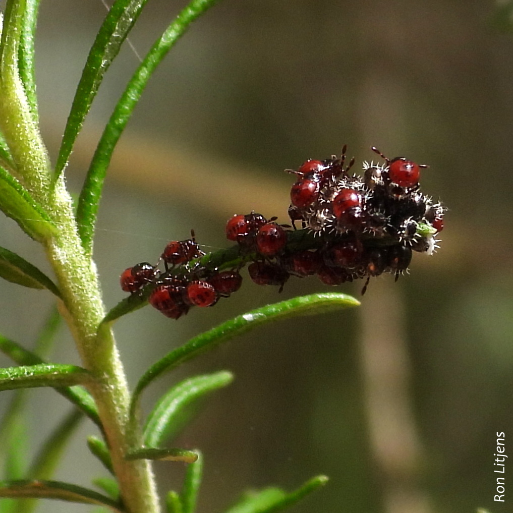 However not all shield bugs are bad. Some predate the very pests that we want to get rid of. Pictured below is a hatching of Spined Predatory Sheild Bugs (Oechalia schellenbergii) in my garden. These bugs have sucking mouthparts which they insert into other insects, inject enzymes and then suck out the juices. And the good news is that one of their known prey is the caterpillar of the Cabbage White Butterfly (Pieris rapae).