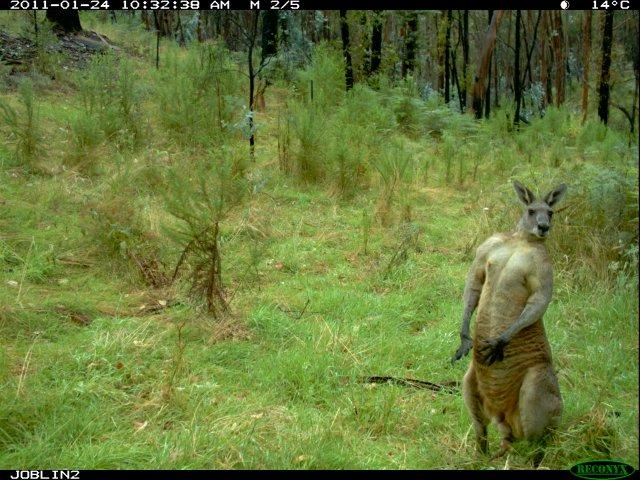 Eastern Grey Kangaroo (Macropus giganteus) 7Eastern Grey Kangaroos (Macropus giganteus) are an all too common sight in the district. Their numbers can build up quickly, yet population control through predation is almost nil. With the good season that we’ve had, numbers are likely to increasing rapidly.