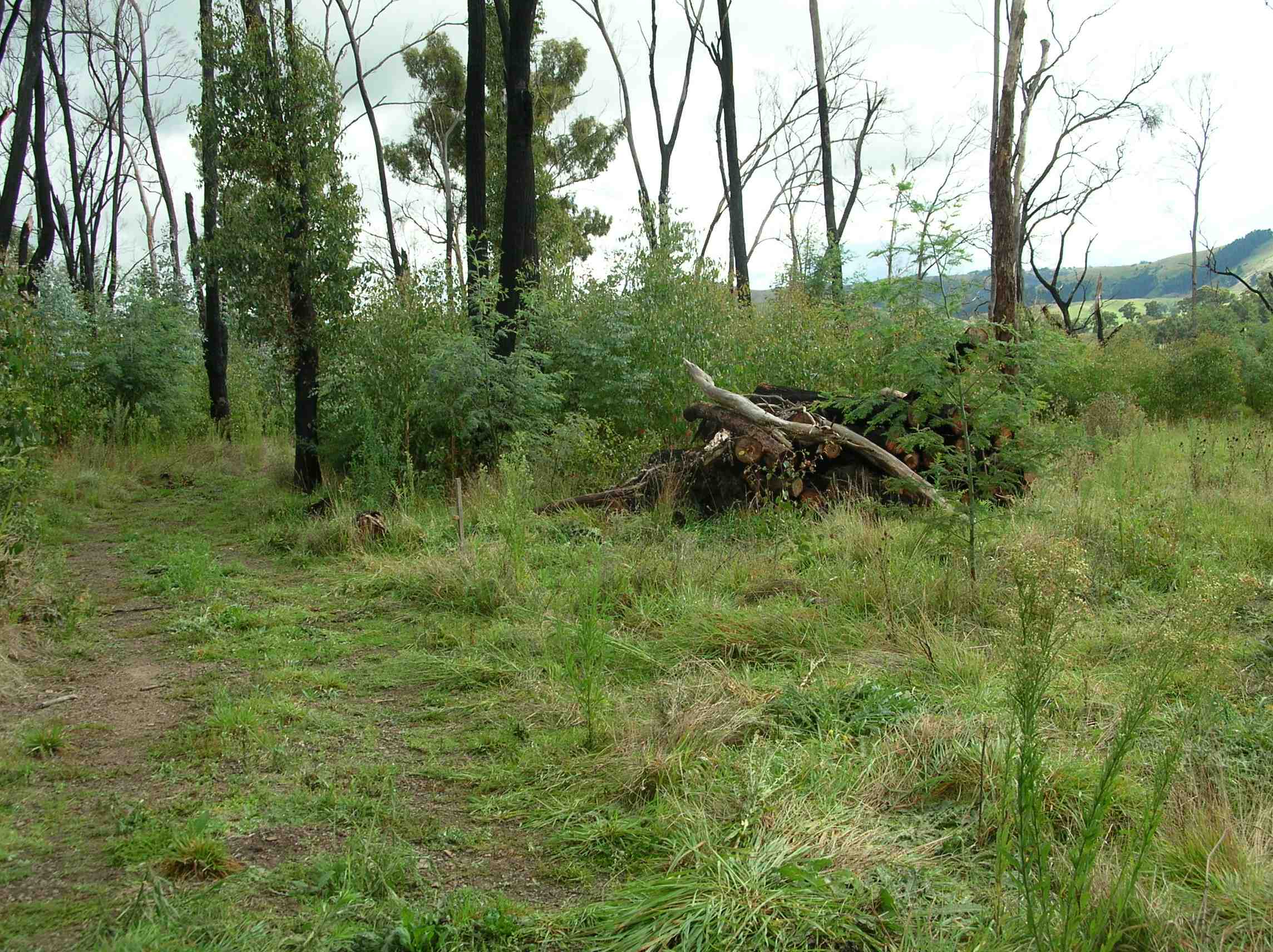 These images and video are from Landmark Lane, Flowerdale, between 24 March and 1 April, 2011. This area suffered a very  hot burn in the Black Saturday fires of Feb. 2009. It was a mixed forest of peppermint, blue gum, candlebark, yellow-box, messmate and silver wattle – all of which are regenerating strongly, at you can see.