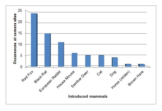 Foxes, rats and rabbits were the most common pest species. The Red Fox was recorded on 17 of the 25 properties surveyed. With the night-time infra-red shots it was not always easy to readily identify the Black Rat from the native Bush Rat and the House Mouse from a native antechinus.