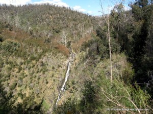 You may have noticed the rusty-browning and defoliation of wattle trees around the district recently.  This was particularly noticeable to us on a trip to the Strath Falls the other day – the effect can be seen in the centre of the photo at left, where much of the dense post-fire regrowth of wattles appears to be dying.