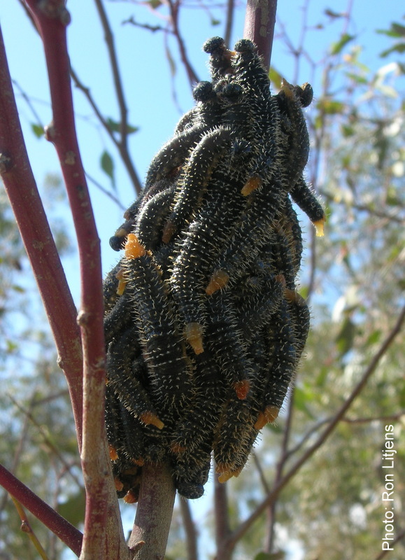 Pictured are the recently seen larvae of the Steel-blue Sawfly (Perga dorsalis).