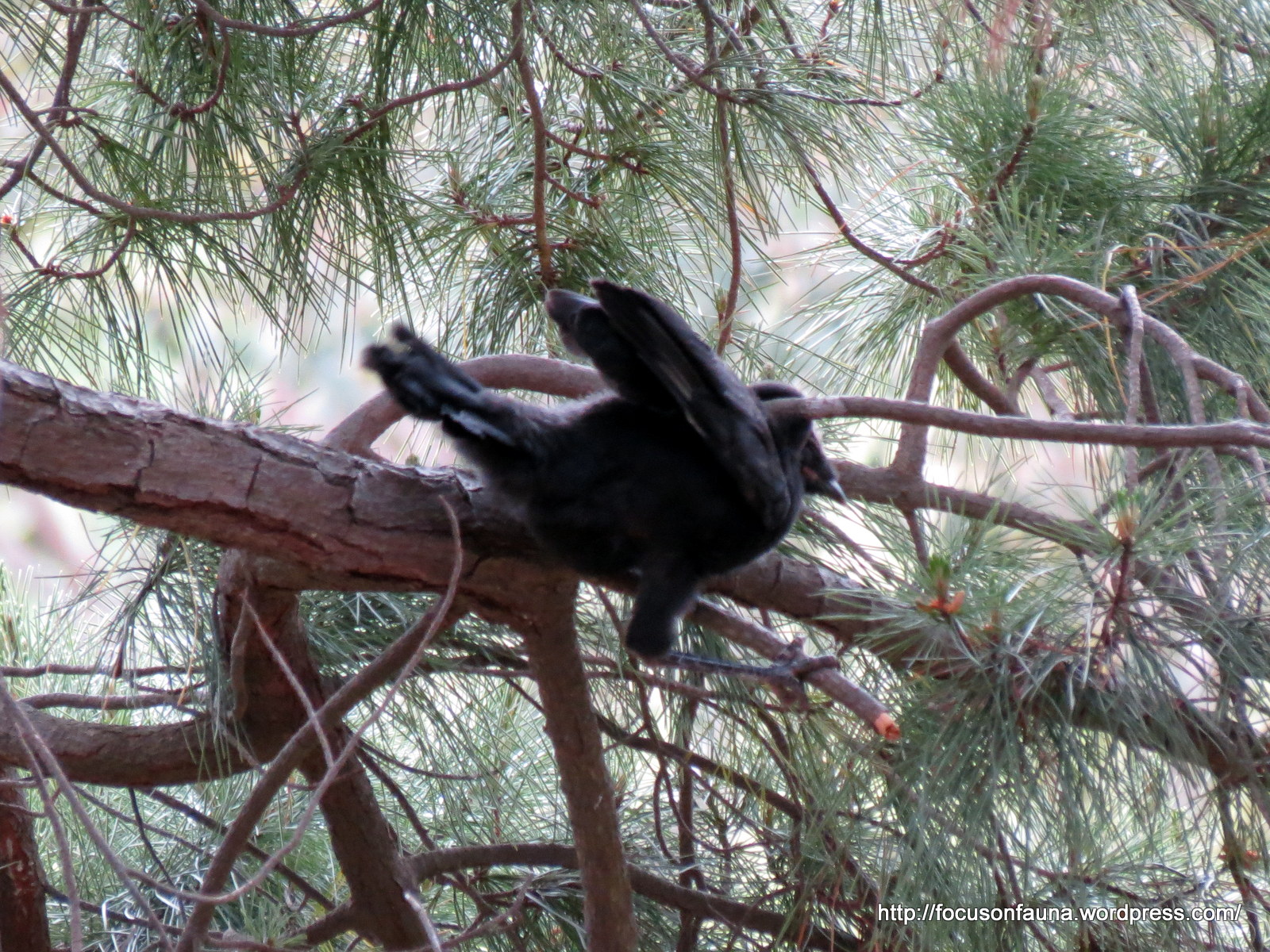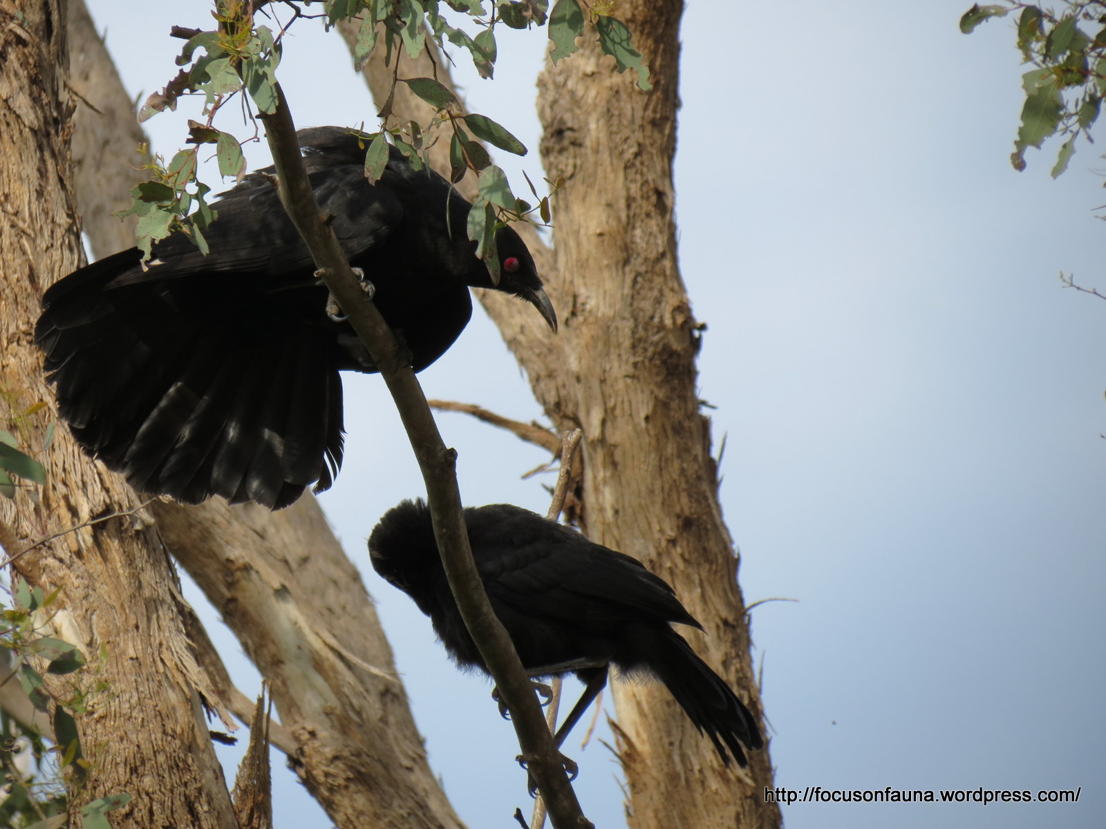 The White-winged Chough chicks featured in the post What’s for dinner? on 6th October left the nest more than a week ago and the three of them are alive and well and keeping at least 7 adults busy feeding and protecting them.