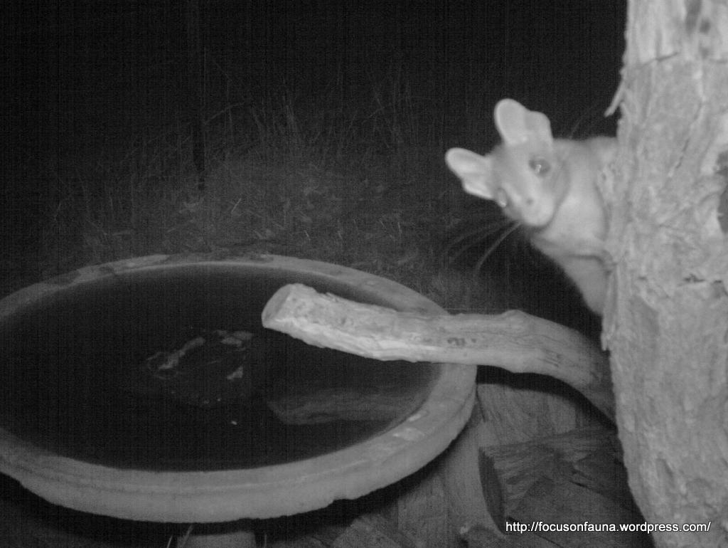 We have had a number of previous posts on the Brush-tailed Phascogale (Phascogale tapoatafa) [just enter ‘phascogale’ in the Search This Site box at right for a list of posts to view], but we never tire of seeing pictures of this fascinating animal, and hope you don’t either. So we have included more remote camera shots in video format of a phascogale at our bird-bath, including close-ups of it peering inquisitively at the camera.