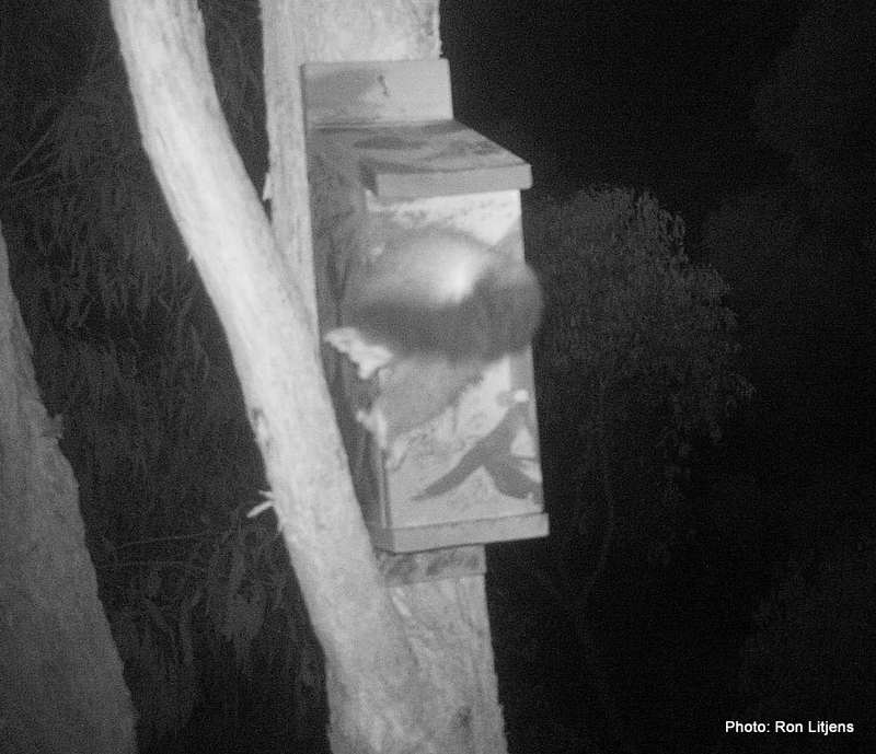 Chubster is a Common Brushtail Possum (Trichosaurus vulpecula) who used to live in our nest box. The possum is so nicknamed not because it is particularly chubby, but because it just seemed to be huge compared to the hole it had to negotiate every night. The photo (left) is the last known image of Chubster trying to wiggle and squeeze itself into the building. A post at the end of last year (click here to view) surmised that due to its size and the upcoming warmer weather, Chubster had not long to reside in these very cosy premises.
