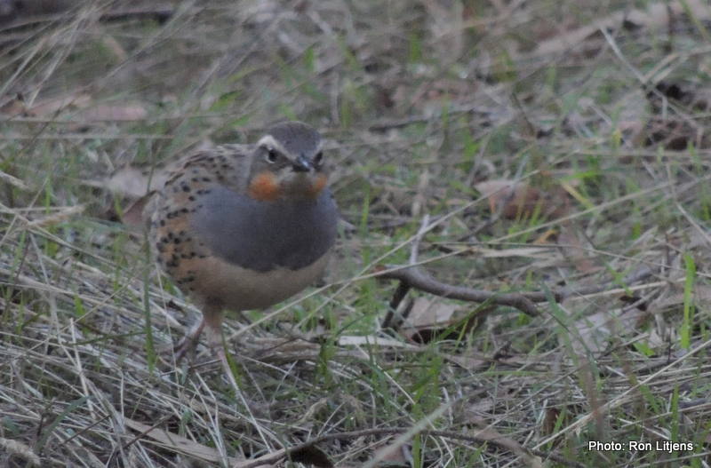 Because of the drought, the long grass is flat and there are not many places for the LQJ’s to hide at the moment. And so it was during my dusk stroll I saw an LQJ power-walking across my path. I managed to get a couple of photos that helped me identify it as a female Spotted Quail-thrush (Cinclosoma punctatum, from the Greek words kikhle meaning thrush, soma meaning body and the Latin word punctus meaning sting—hence spot).