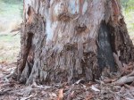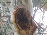 This particular tree, with a diameter at breast height (DBH) of over 1.6 metres, is clearly many generations old and may even pre-date European occupation. Interestingly, there are three other old-growth trees with a DBH of more than 1m (Grey Box, Red Stringybark and a fallen Yellow Box) within a radius of 25m, but the Candlebark is the only one with a significant number of hollows and spouts. Known occupants of the hollows include Striated Pardalotes, Tree Martins and (unwelcome) Common Starlings, but Sugar Gliders and a Brush-tailed Phascogale have been recorded on remote camera a short distance away, so are likely to be utilising the tree hollows. This tree has also been host to nesting Brown Falcons and Nankeen Kestrels in the past.
