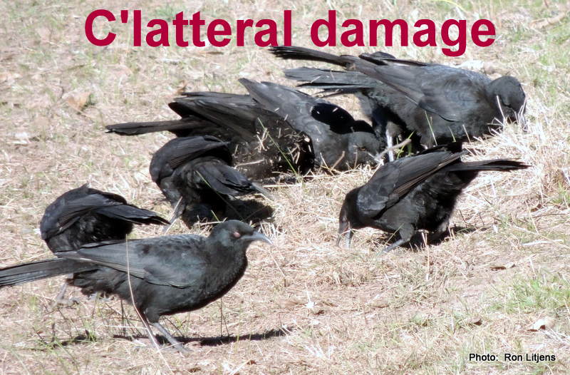 The collective noun for a group of crows is a murder. The origin of the term has been lost in time. Some think it is derived from the medieval torture of ‘crow cages’, where the guilty (and sometimes not-so-guilty) was left to die suspended in cages while the crows feasted on the body. Another school of thought is that crows will euthanise a sick or old member of their group. Either way, it probably doesn’t matter because the birds pictured are ravens (crows do not inhabit the King Parrot Creek valley). The collective term for ravens is an unkindness. This refers to an old legend that ravens push their young out of the nest to survive as best they can.