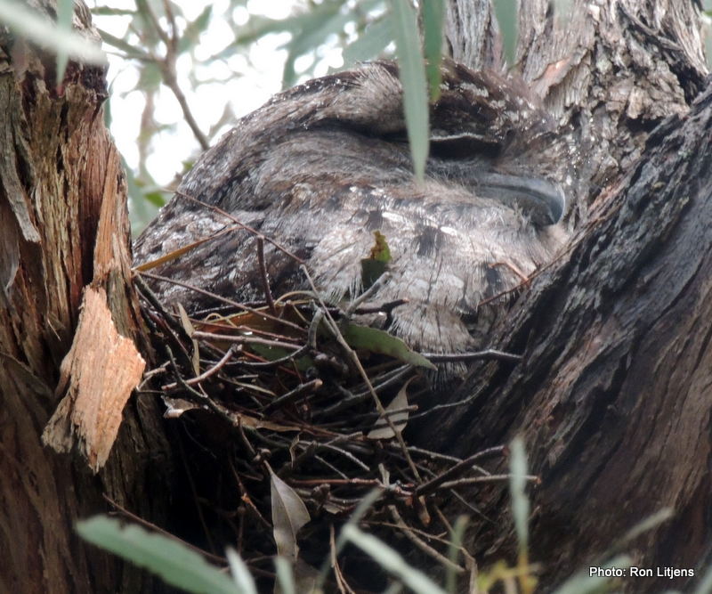 While over at Len and Trude’s place, the recently sighted (click HERE to view post) Tawny Frogmouths (Podargus strigoides) have built their typical flimsy nest of twigs and leaves and have started sitting. I will watch this nest with interest because it doesn’t look like it could withstand a breath of wind.