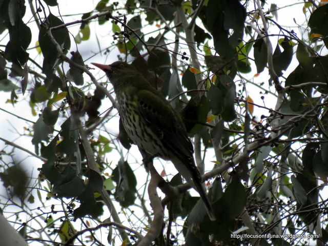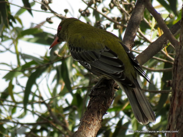 The similarity of the call to the name is coincidental rather than deliberate, since “oriole” actually comes from the genus name Oriolus meaning “golden (bird)”, a description more suited to other oriole species not found here: the Yellow Oriole and the Figbird.