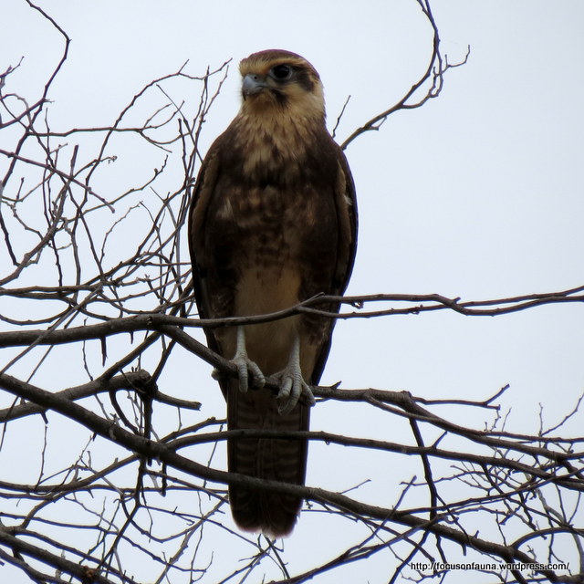 In a recent post (click on An unexpected visitor), Ronlit mentioned the difficulty of getting close enough to raptors to get a good look and to take half-way decent photos. One exception in the more open areas of this district is the Brown Falcon (Falco berigora) which can sometimes be seen on roadsides, perched on a dead tree, fence-post or power pole, which offer the falcon clear views of prey crossing the road and open farmland.