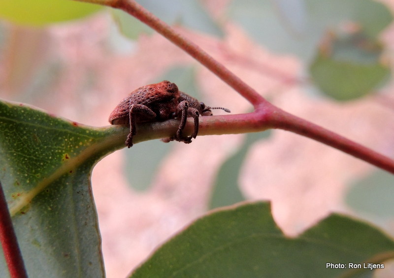 Eucalyptus Weevils (pictured below), as the name suggests, are beetles that live in gum trees. When young the adults are rust red in