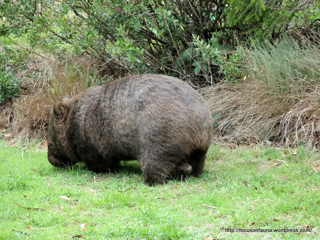 Our resident Common Wombat hadn’t been seen for a while, but she turned up the other day with what is becoming a familiar bulge! When we managed to get close enough, a small pink nose confirmed what we suspected – another youngster in the pouch (see photo below).