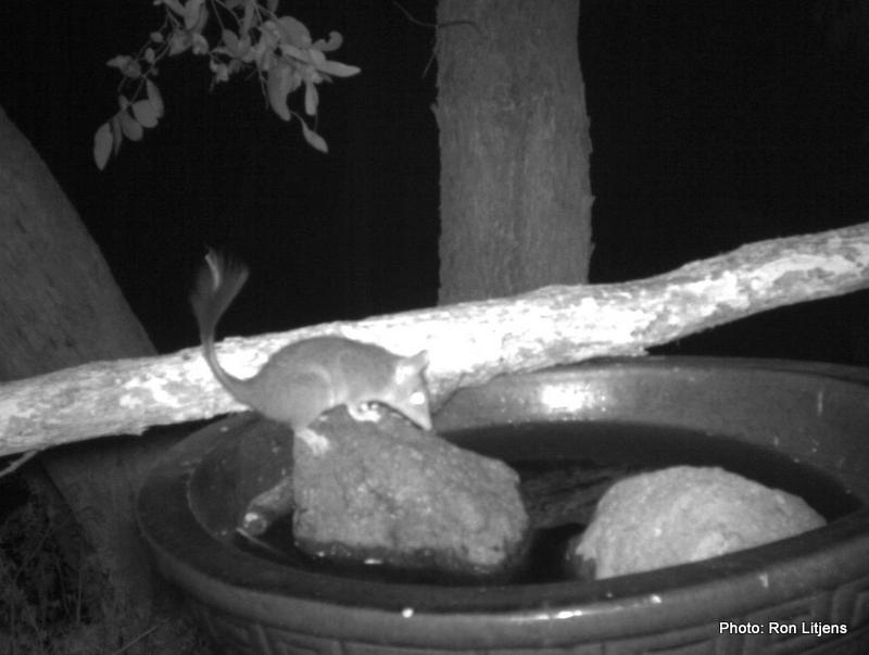 However, in recent times up to three or four phascogales are turning up at our birdbath on a nightly basis. They can be identified individually by their physical differences. Take ‘Stumpy’ for example, pictured above. Presumably an altercation with another phascogale has left it with a defect on the very feature that provides its name.