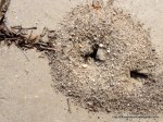 Recently, an ant struggling with an insect corpse across our brick pavers caught our attention. We stopped to watch the activity around the nearby ant-hole, where some ants were busily excavating, while others appeared to be building a stockpile of leaves and stalks.