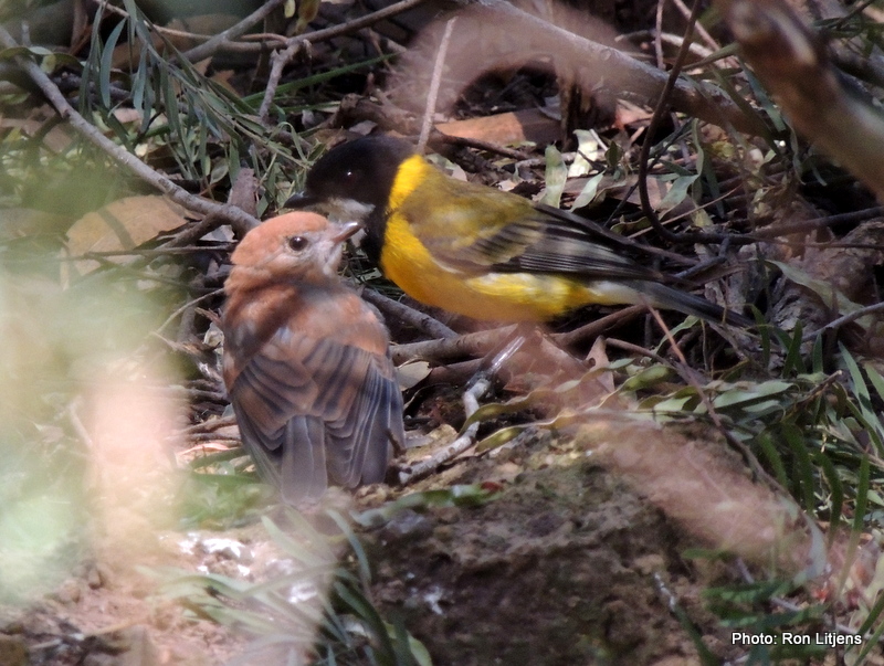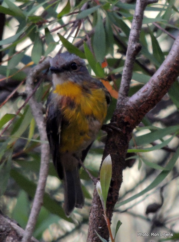 DSCN4403A recent post described the marked difference in the plumage of immature or juvenile birds compared to the adults. For the past few weeks I have been spending some time in the ‘play-pen’ – a tumbled-down thicket of wattles and hakeas that seems to be the favoured hang-out of young birds of a variety of species awaiting the return of their parent bearing food. For some birds such as the Eastern Yellow Robin (Eopsaltria australis), pictured left, the immature bird looks just like the grown up, only more ‘manky’. The loss of a few more of those grey chest feathers and the bird pictured will almost look like a grown up. DSCN4174What was harder to pick (for me at least) was the identity of the chick pictured right. As ever, our local birdos Dave and Geoff came to the rescue with the answer (the same one in fact) – a juvenile Golden Whistler (Pachycephala pectoralis). The terms juvenile and immature are important in Golden Whistlers because the juvenile bird sheds its brown feathers for grey as it transitions to immature. DSCN4577As the picture to the left shows I should have waited for the parent to show up to identify the chick.