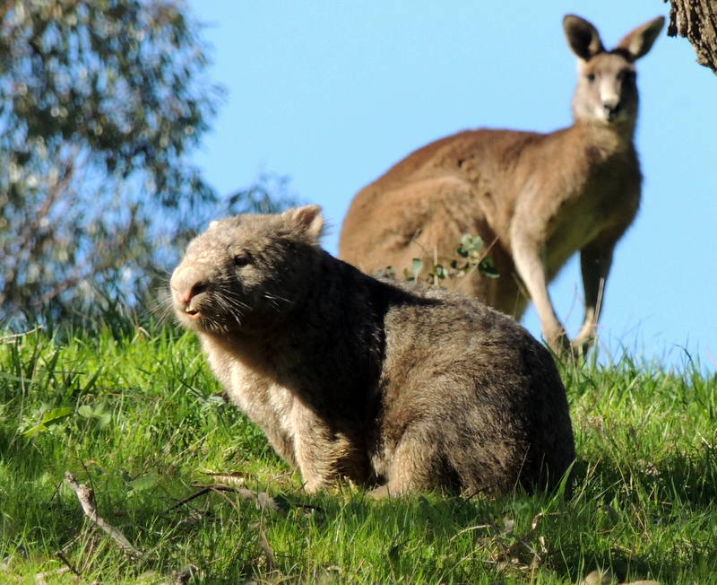 It was therefore a rare treat to see this large healthy specimen out and about during daylight. There was a strong southerly wind blowing towards me, which probably explains how I managed to get so close to both the wombat and the Eastern Grey Kangaroo (Macropodus giganteus) before they could smell or hear that I was there.