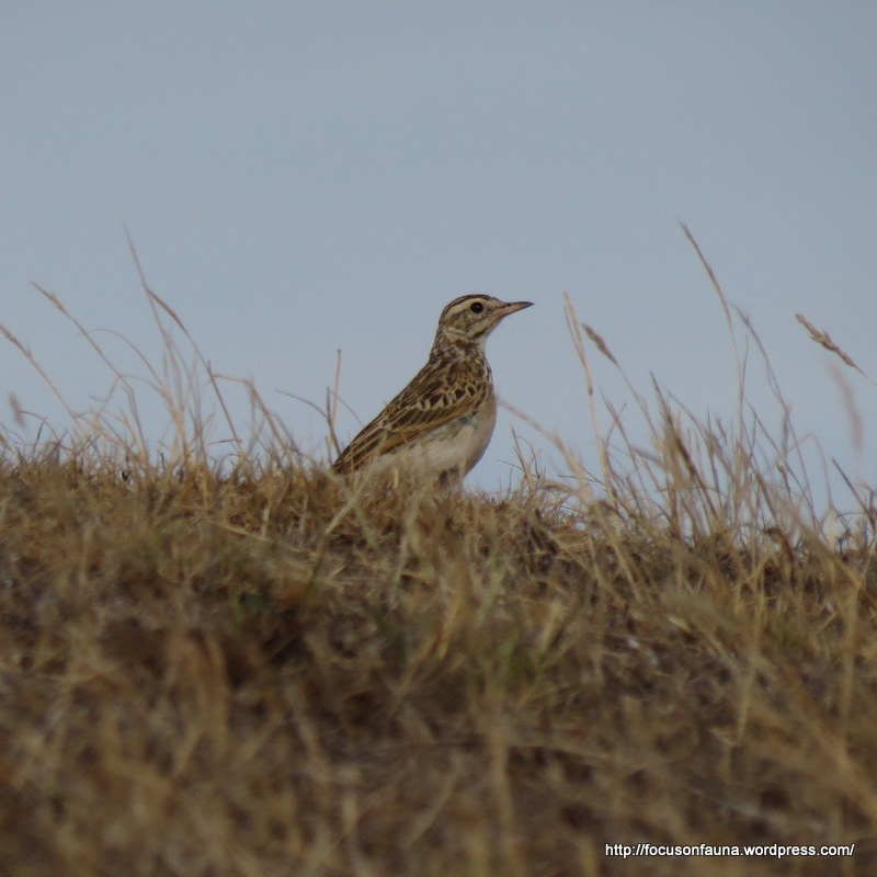 It’s not an easy bird to detect, but after straining to spot even one, we eventually realised there were at least five scurrying around, probably after the many small grasshoppers among the grass tufts. The pipit’s pale eyebrow and white edges to its tail are indicators of its presence, and it often perches on rocks or fences, flicking its tail up and down.