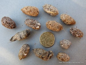 Inside the shed we found streaks of whitewash excrement down a post in the corner, and on a corrugated iron sheet below there were dozens of regurgitated pellets, showing that the kestrel has been using the top of the post as a roost for some time. The pellets were of various colours, consistencies and composition, reflecting the bird’s varied diet of rodents, skinks, ground birds and many insects and other invertebrates.