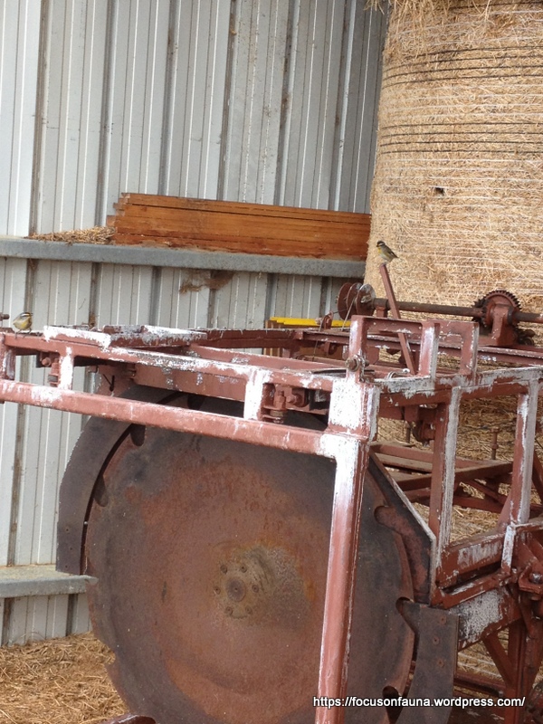 Last month we had a story of a Nankeen Kestrel that has taken up residence in our hay shed. Now we learn that there’s a bale of hay in the shed at the Three Sisters property near Flowerdale that won’t be available for stockfeed for a while. A pair of Striated Pardalotes has taken advantage of the holes made by spikes on the tractor used to lift large round bales, and has adopted one of the holes as a tunnel to their nest chamber inside the bale. The two birds can be seen in the picture at left.