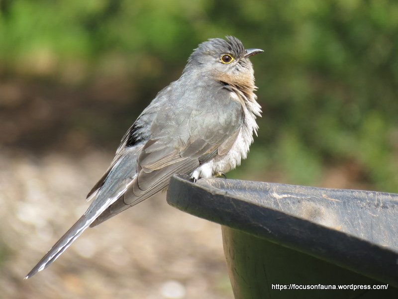 Early spring sees the return of some of the seasonal migratory birds after their winter sojourn in warmer climes further north. Examples are the Black-faced Cuckoo-shrike, Olive-backed Oriole, Rufous Whistler and, being breeding time, the various cuckoos. So far we have had Shining Bronze-Cuckoo and, prominent in our garden, the Fan-tailed Cuckoo pictured here.