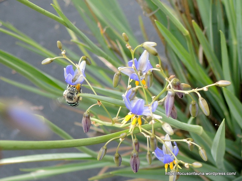 » Blue-banded Bee on flax lily