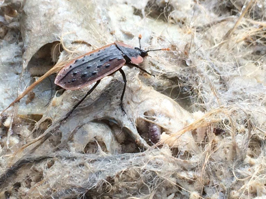 The brown, flattish shaped beetle with the handsome orange-tipped antennae is a Carrion Beetle (Ptomaphila lacrymosa) which as the name suggests feeds on the flesh of dead animals but also on fly larvae. They are distinguished by short, longitudinal ridges (called tubercules) on the wing-casings. Both beetles play an important role in maintaining a clean environment and reducing the risk of disease by consuming carcasses and/or fly larvae.