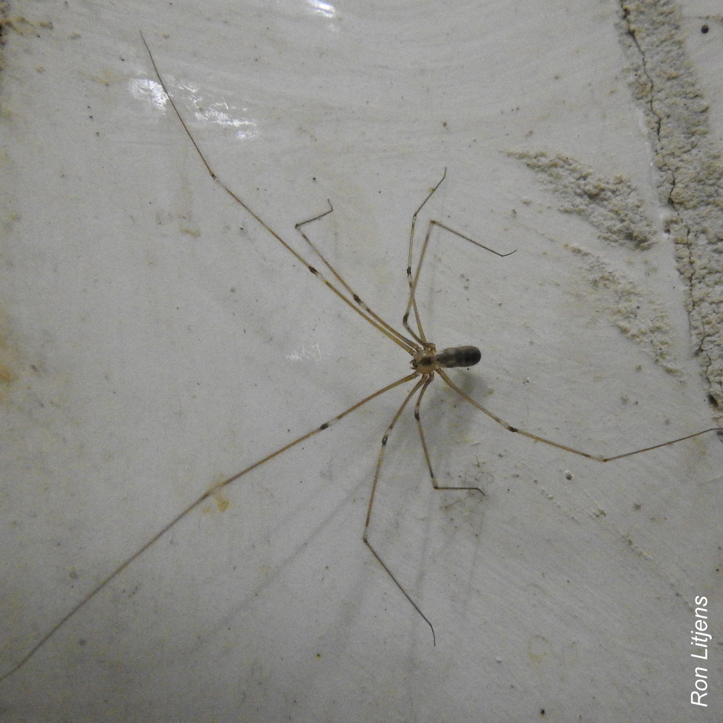 Daddy Long-Legs Spiders, as the name suggests, have legs that are extremely long when compared to the body size (see picture above). They are usually found upside-down in webs built in undisturbed areas of buildings such as in the corners of ceilings. They build three-dimensional, messy webs that unlike other spider webs are not sticky. Prey gets entangled in the web and is quickly paralysed and wrapped in silk by the waiting spider. A Daddy Long-Legs web is littered with such silk bundles. These spiders are not native to Australia.