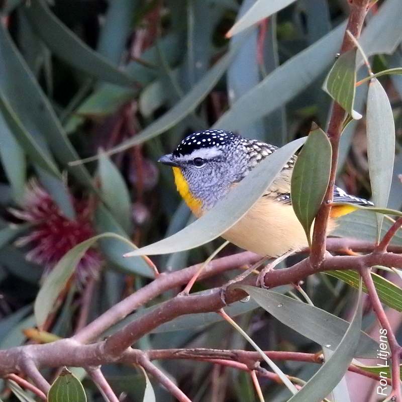 Even though winter is still with us the LBJ (little brown job) brigade of birds is starting to make an appearance. Although this group commonly contains birds that are actually brown – thornbills, treecreepers, scrub-wrens and the like – a recent addition to the gang, hanging out in the Western Australian hakea currently flowering in our yard has been a pair of Spotted Pardalotes. And they are anything but brown (see picture left).