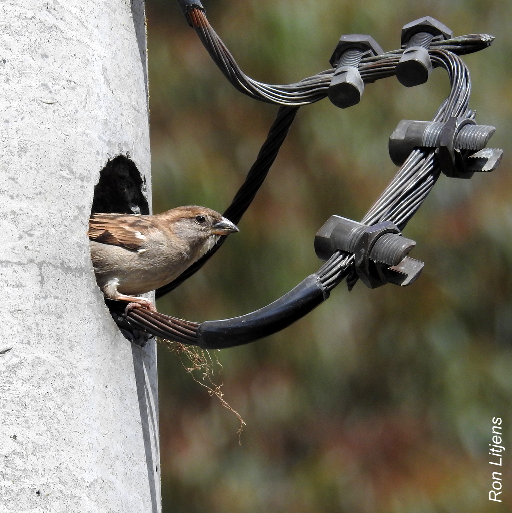 Every spring I eagerly await the return of a pair of Striated Pardalotes that nest in a hole in a concrete power-pole. Every year they turn up and I follow their activities from delivery of leaves and twigs to the nest hole through to the appearance of the fledglings. This year however I was surprised and very disappointed that the hole was commandeered by a pair of House Sparrows (Passer domesticus) (above left).