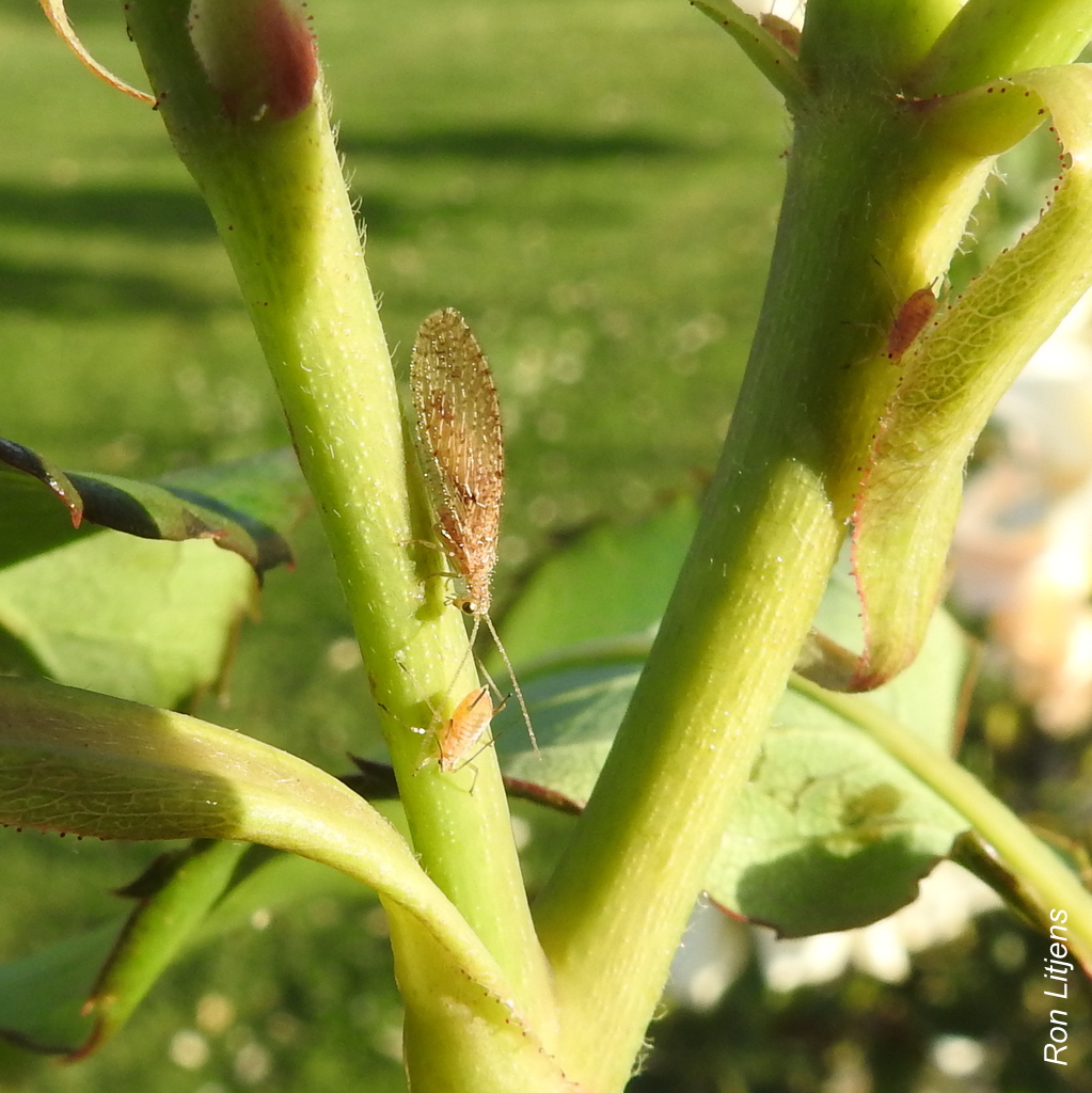 Most gardeners, particularly of roses, will acknowledge aphids as one of their main garden pests. Aphids are soft bodied sap-sucking insects. Many species are plant specific in that they only feed on one type of plant. They congregate on plants in large numbers. When a particular stem or flower becomes overcrowded new aphids are born with wings so that they can move to another food source.