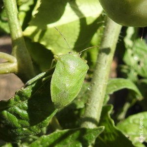 Last month I wrote a post describing how, for a number of reasons, I had secretly released some newly hatched insects into my wife’s vegetable garden. Of course my cover was blown when she happened to read the post in question (who would have thought!). However I got into serious trouble when soon afterwards the little critters which had initially disappeared turned up in great numbers as instars of the vegetable pest, the Southern Green Shield Bug (Nezara viridula) and proceeded to damage our tomato crop.