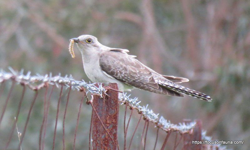 The Pallid Cuckoo uses a perch and pounce technique to catch insects on the ground and is often seen along fence-lines waiting patiently for its next meal. It seems particularly fond of caterpillars (see top photo above), even those hairy ones spurned by many other birds – must have a strong stomach!