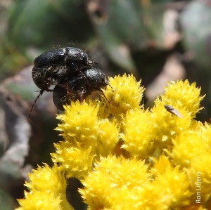 However, for these beetles pictured right a floret of Clustered Everlastings (Chrysocephalum semipapposum) might make a romantic setting but where’s the privacy.