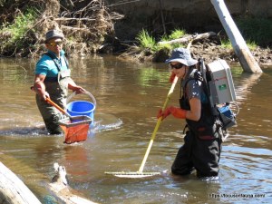 The healthy state of fish stocks in the creek was shown last week during an electro-fishing demonstration at Moores Road Reserve, following a meeting of Goulburn Broken Catchment Management Authority staff and local Landcare group representatives with Karen Lau, the newly appointed Executive Director of Catchments and Waterways at DELWP. In a fairly short time, in only about 100m of creek, ARI scientists had collected a bucket-full of temporarily stunned fish, including many Blackfish, both River and Two-spined, trout, a Freshwater Cray and two endangered Macquarie Perch. As a rule of thumb, electro-fishing captures about 20% of the fish in a given length of stream, so in this section of the King Parrot, there were clearly a lot of fish indeed!