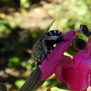 The thing that amazes me the most since participating in these surveys is not the fact that there is a large range of native bees in addition to the Honey Bees pollinating our flowers, but that there are many other species that perform the same task – flies, wasps, beetles, butterflies, moths, birds. This is particularly evident in the spring wild pollinator counts (This year between 11 – 18 November).