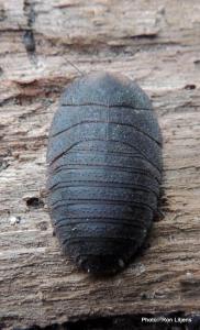 In some insects the pronotum is enlarged. Cockroaches for example have a pronotum which extends to cover the entire head, sort of like a shield. In the photo left, the head of the Bark Cockroach (Laxta granicollis) can just be seen through the translucent pronotum. (Hint: the head is the end with the antennae sticking out).