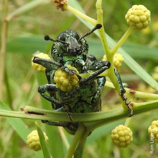 Botany Bay Weevils live exclusively on a few select wattles, several of which are found in the King Parrot Creek valley. The adults feed on the young leaves and the grubs live in the root system of the same plant.