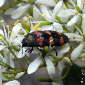 A half hour survey of a stand of this plant recently yielded over two dozen beetle species. Among the most striking are the Flower Chafer group of beetles e.g. the Fiddler Beetle, and a group collectively known as Jewel Beetles (Buprestidae family) of which there are about 1200 known species in Australia.