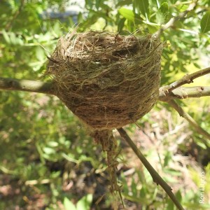 The literature says the sitting time is about two weeks. Through the three days of heavy downpours and the plus 40C days a bird sat on the nest (pictured above). Then after a week and a half, nothing. The nest was left untended and has been ever since. No explanation. Not even any evidence of eggs. All that is left is a deteriorating construction of bark and Mac hair, pictured left.