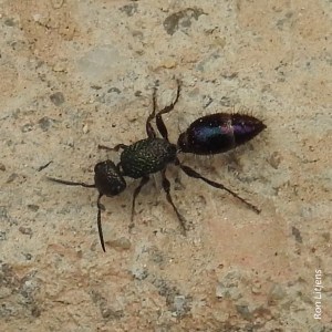 Cuckoo Wasps are typically iridescent green or blue. As the name suggests they are a parasitic wasp laying their eggs in the nest of their host, in this case Mud-Dauber Wasps. When the Cuckoo Wasp eggs hatch the larvae eat the food that has been stored for the Mud-dauber young and then when the Mud-daubers larvae hatch they eat them as well.