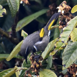Maree from Junction Hill, who recently provided photos for the blog on the Mantis Parasitic Wasp she observed outside her kitchen window, noticed a ‘yellow-flashed’ honeyeater in her loquat tree recently. It looked like a New Holland Honeyeater…but not quite. After spending hours trying to get a clear photograph of the bird, the pictures (right and below), showed it to be a Crescent Honeyeater (Phylidonyris pyrrhopterus), not seen by Macwake, our resident ‘birdo’, in the King Parrot Valley since 2008.