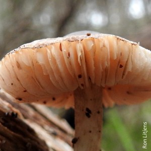 The autumn rains have triggered the annual explosion of fungi across the landscape. Mushrooms are the fruiting body of the fungus (the same as a pear is the fruiting body of a pear tree). When the mushroom ripens it opens and releases millions of spores. These spores drop on the ground or get dispersed by the wind so the fungus can propagate. Feeding on these spores are sporivores. Knowing how big spores are (not very), these creatures are none-too-big themselves (see photo below).