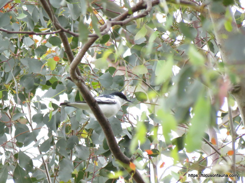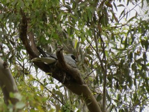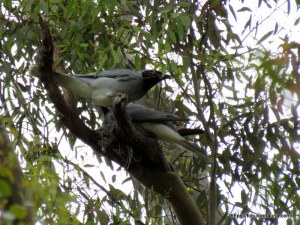 Following the previous post by Ronlit on unexpectedly finding water birds nesting high in trees, in the case of the Black-faced Cuckoo-shrike it is not unexpected at all for this arboreal bird, but what is surprising is that a) we managed to spot one high up in a large Yellow Box (Eucalyptus melliodora) right outside our front gate, and b) that cuckoo-shrikes ever manage to successfully breed since their nest is typically a small, shallow and flimsy affair precariously balanced in the fork of a branch and so is very susceptible to strong winds (and is very hard to see from below!).