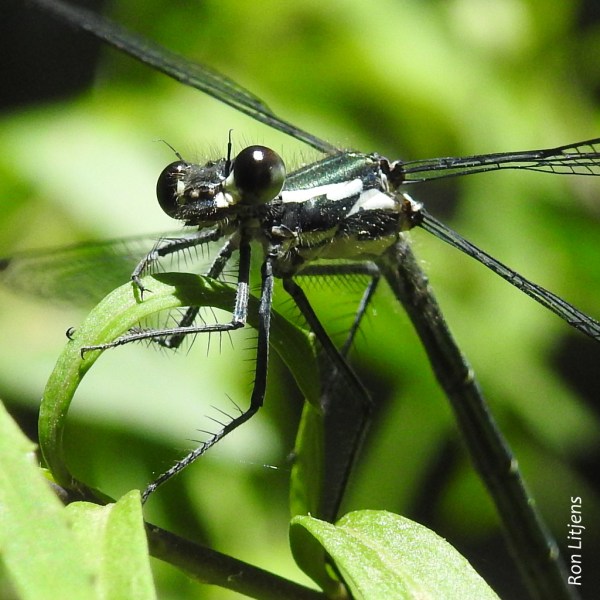 Insects of the order Odonata i.e. dragonflies and damselflies (pictured below), and flies such as Robber Flies (pictured far below) catch prey on the wing. When prey flies through their territory they give chase and grasp the prey inflight with their legs. This requires excellent vision (these insects, see pictured, have enormous compound eyes), narrow wings for speedy flight, great flying dexterity and hairy legs!