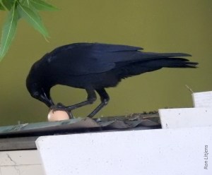 Corvids (ravens and crows) are omnivorous. Depending on the season they will feed on invertebrates such as caterpillars, spiders, centipedes and grasshoppers, plant material and carrion. In late spring and early summer they will explore trees looking for bird’s nests and take the chicks and eggs. As with raptors such as eagles you will often see ravens being harassed by other birds protecting their nests. They are opportunistic feeders and whilst not hunters of chicken eggs will certainly feed on them if they chance upon it.